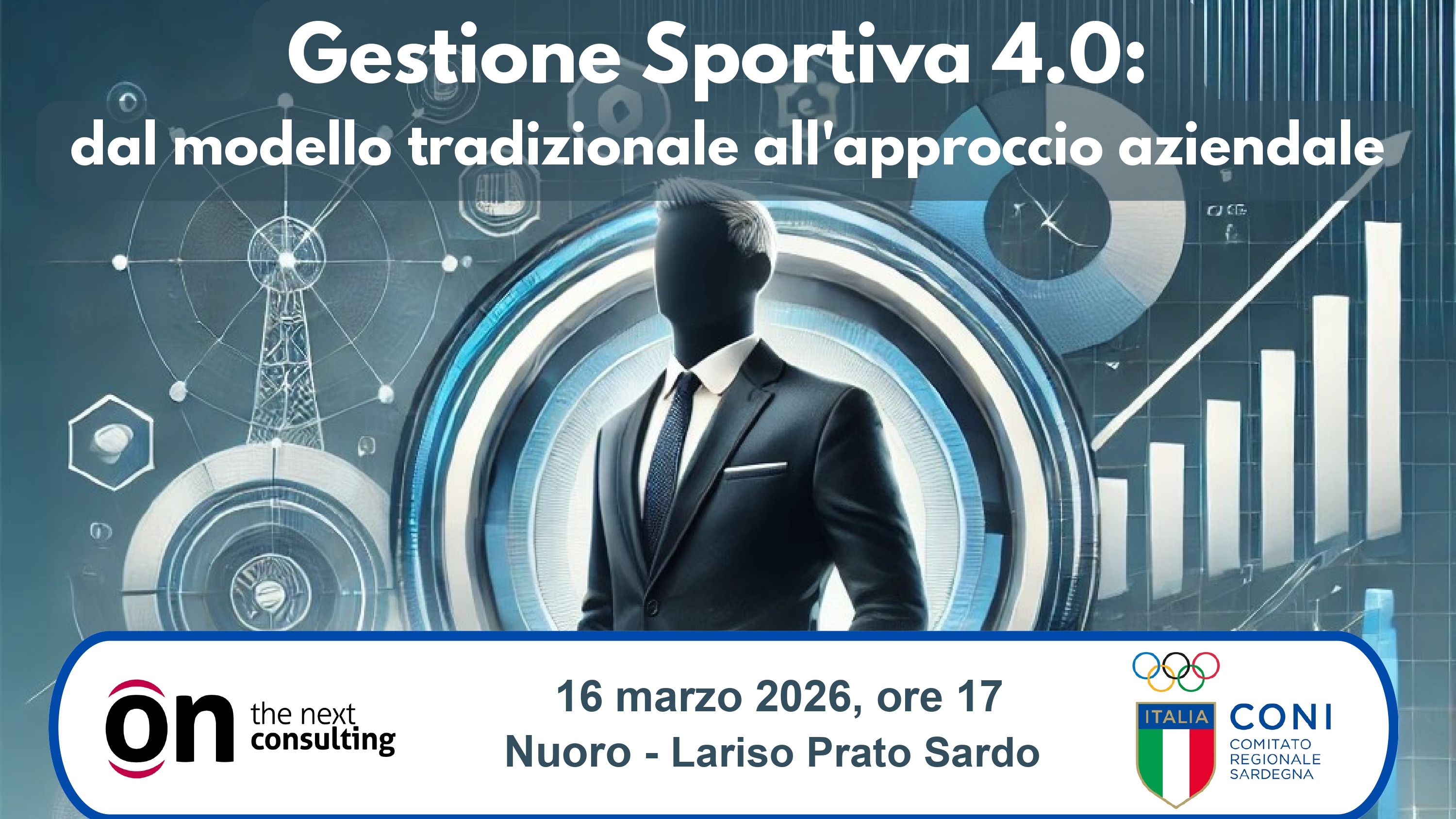 News 16 Feb 2026 Gestione sportiva 4.0: il 16 marzo a Nuoro l'incontro di formazione Si svolgerà lunedì 16 marzo 2026 alle 17.00 nella sala convegni della Lariso a Nuoro (Via Marina Bellisario 61, località Pratosardo) un nuovo incontro organizzato dal Coni Sardegna in collaborazione con ON - The Next Consulting per affrontare il...