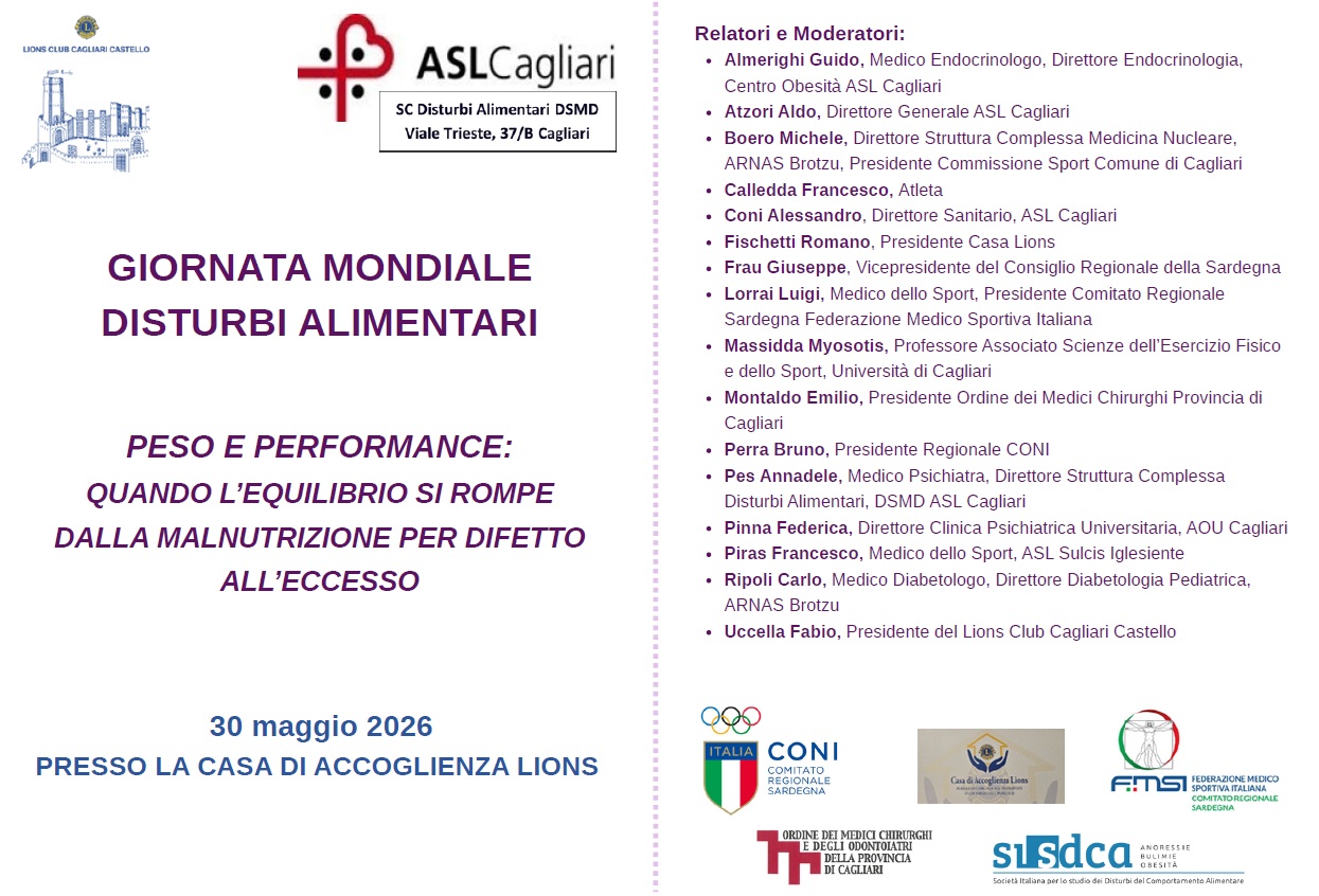 News 16 Apr 2026 Disturbi alimentari e sport: a Cagliari un convegno organizzato da ASL e FMSI Sardegna